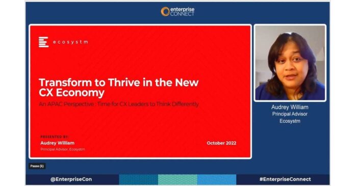 Audrey William, Principal Advisor at Ecosystm, will outline what APAC CX leaders need to do to push the boundaries in CX delivery through the application of people, processes and technologies.